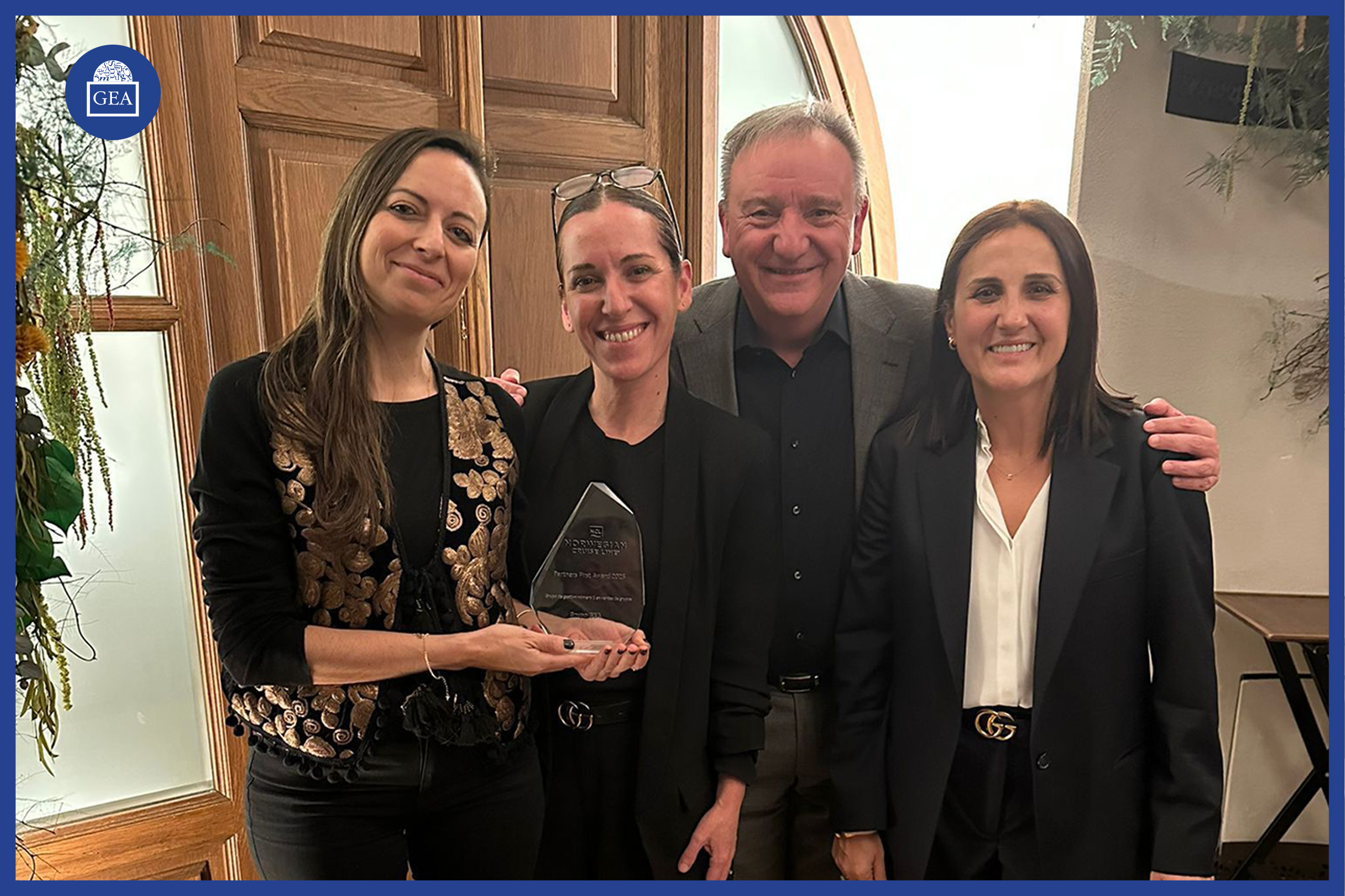 Grupo GEA ha sido galardonado por parte de la naviera NCL con el premio Partners First Award 2025 por ser la Cadena número 1 en ventas de grupos. El premio ha sido recibo por parte de GEA durante el evento Norwegian Cruise Line Awards 2025 Madrid, celebrado en la noche del día 22 de enero. “Sin duda esto es el reconocimiento para todo el Grupo. Gracias a la labor de nuestras agencias, el premio es de todos”, dicen desde dirección.